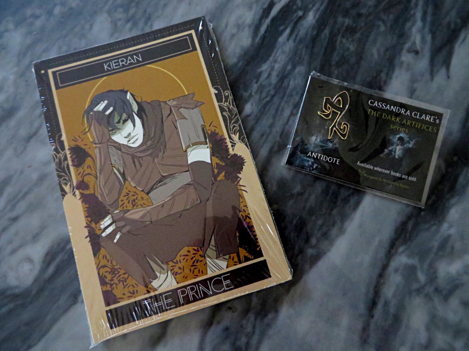 Cassandra Jean’s Artwork on Postcards and a Rune Pin – I am absolutely in love with this. I saw some of the runeย pins that people got at BookCon and am excited that I received one of my own! I am slightly confused though why out of every runeย out there they decided to send people antidote. Can anyone enlighten me?