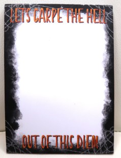 I love the quote which is from the Darkest Minds, but the barbed wire just kind of looks like spider webs to me and with the black, white and orange theme this just looks like a Halloween notepad.