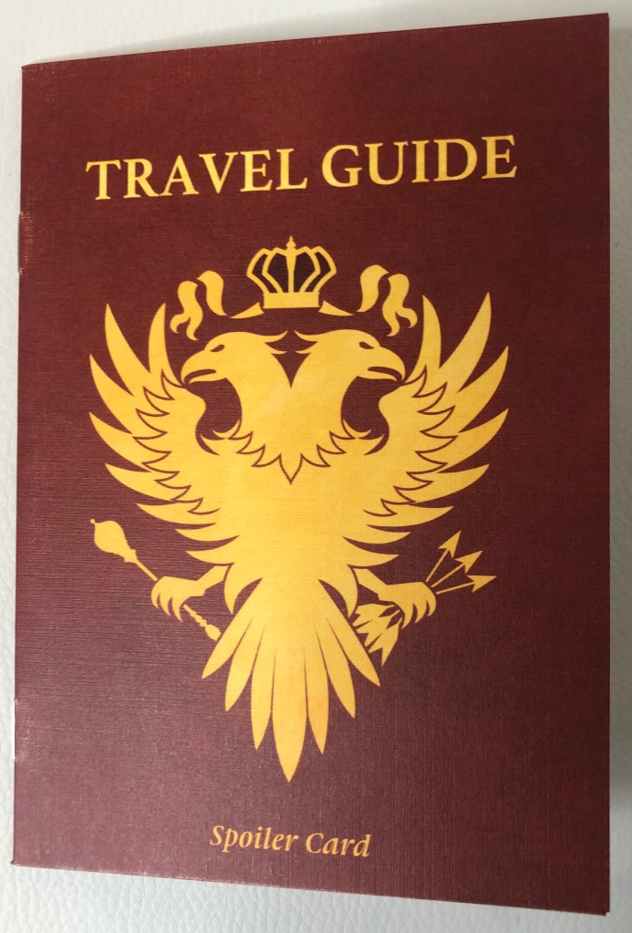 Just like the Kingdom of Ash, there is a travel guide that functions as the spoiler card for this box.