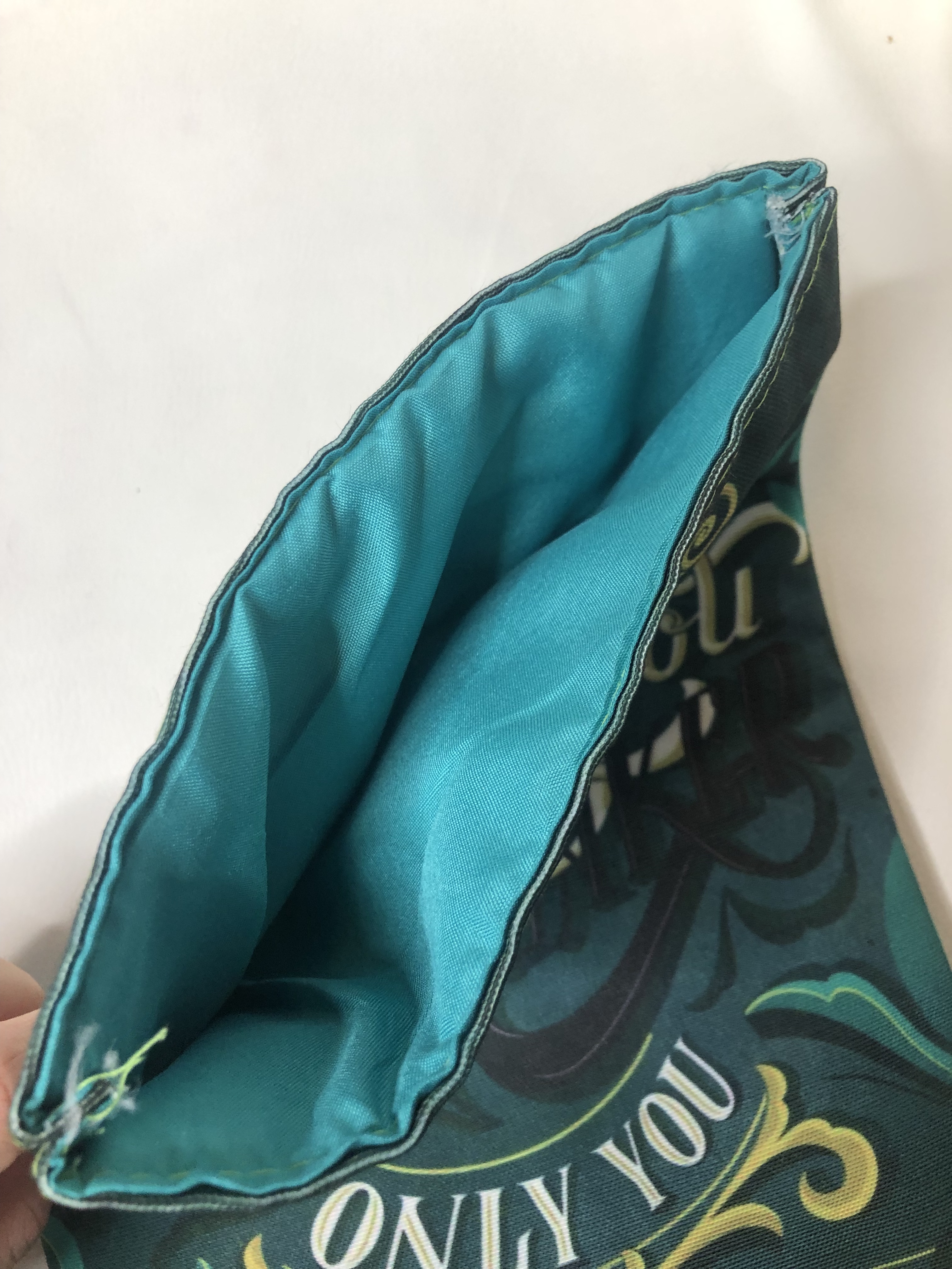 I love the design, the quote, and the colours – but the quality is not great. As you can see in the second photo it’s not even sewn together cleanly, so the edges are coming apart. I still love it though and hope I can use it to protect some books (even though it isn’t really padded).