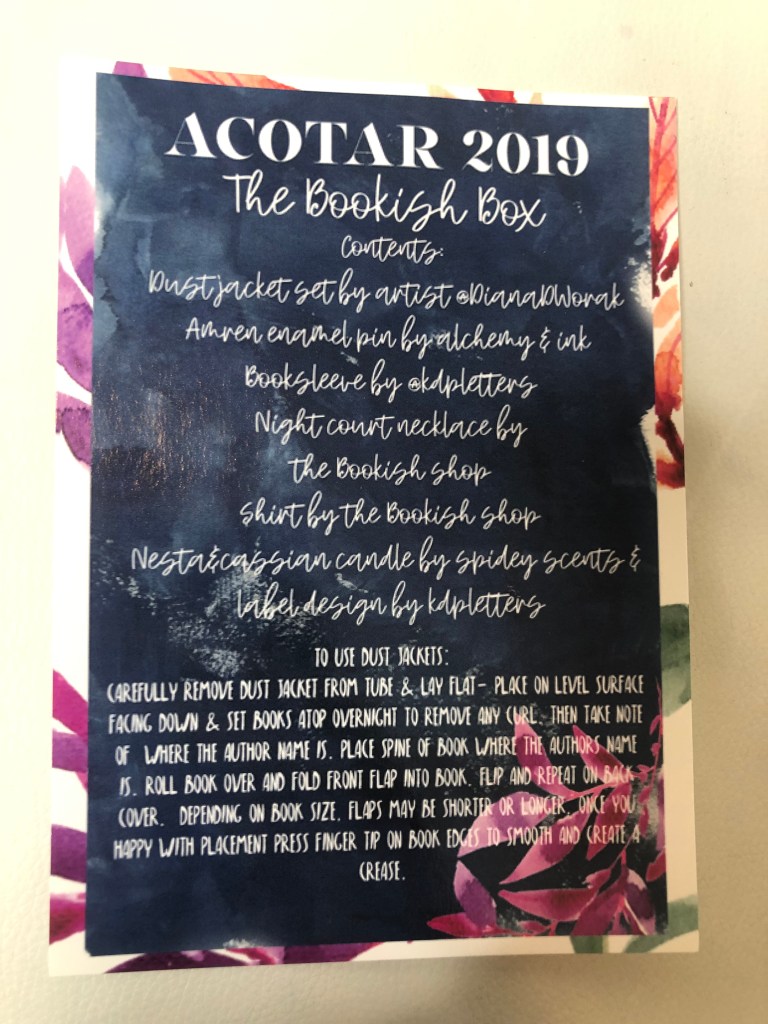 I definitely like some of the items in this box, but overall I don’t know that it was worth the $50 it ended up costing me to order? But I wanted to take a chance, see if it was worth it because I knew they were also curating boxes for Throne of Glass with special dust jackets and maybe I needed them as well.. and yes, I may need them, but I’ll just have to hope they end up on the Bookish store.