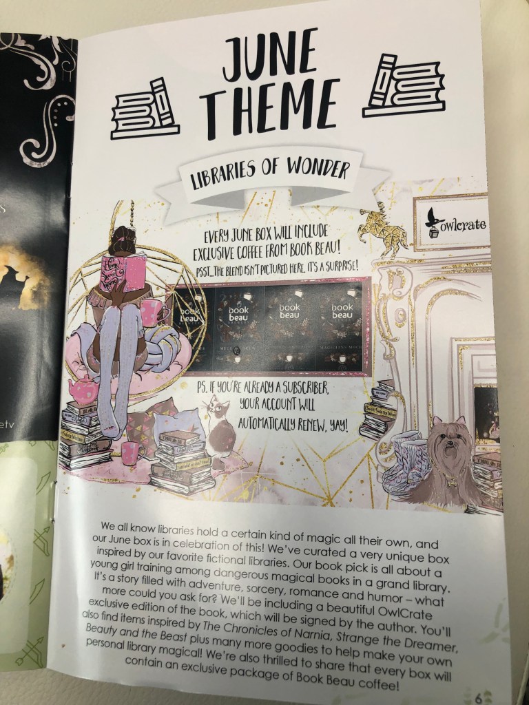 Lovely goodies! I have the book on my Kindle. I haven’t tried OwlCrate before but I did do PageHabit for a time. I just don’t have the space for all the physical books I want!!
