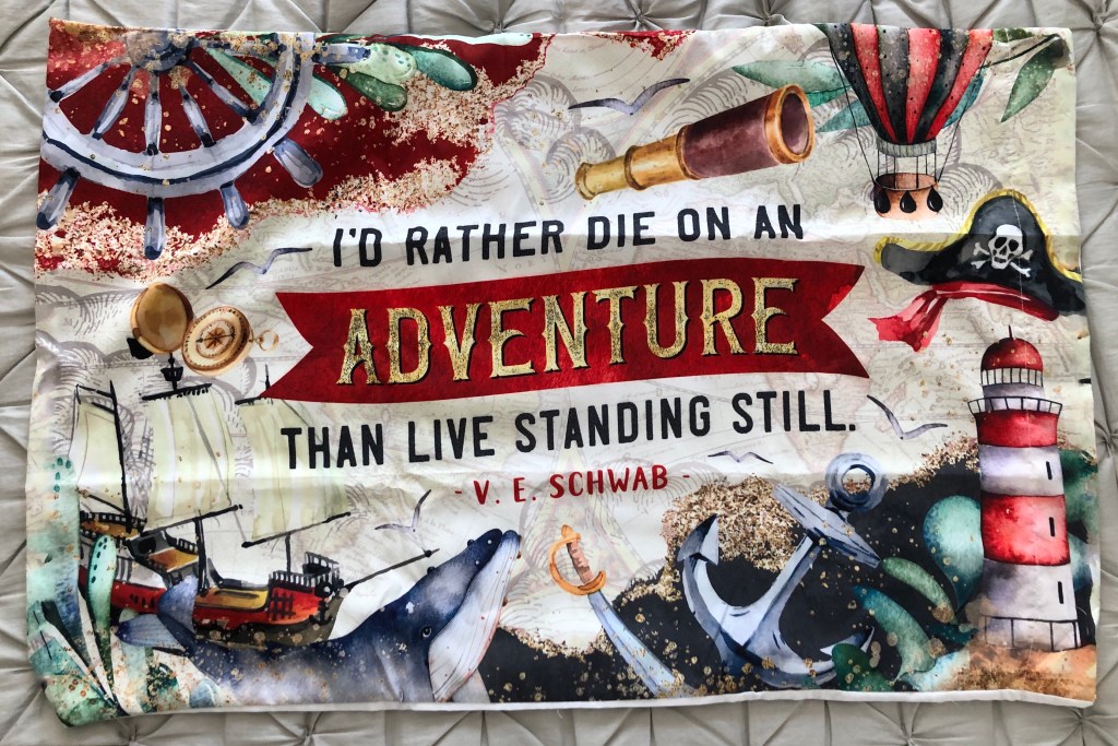 I love the quote and the series (and the artwork, honestly, it’s gorgeous), it’s just not my style as a pillowcase? Certainly not the bed kind, as opposed to the couch kind.
