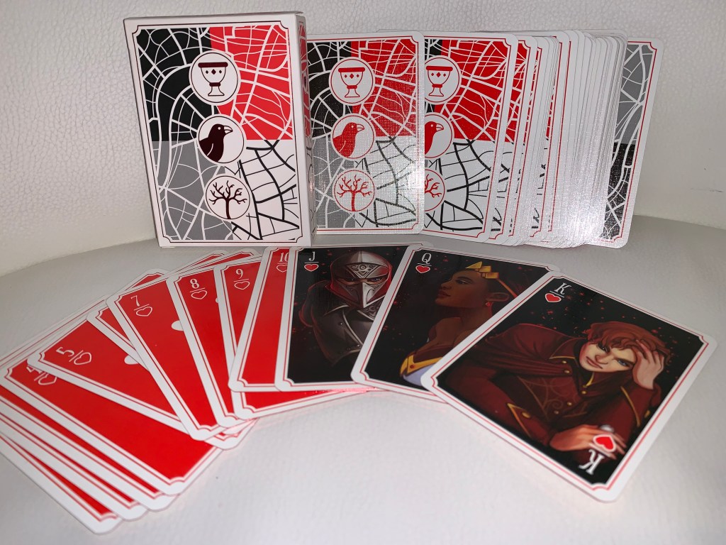 I am always afraid to use playing cards that I get in a box, because they’re gorgeous and what if they get damaged? These are actually good cards though (they sort of have that waxy/smooth feeling so you know they’ll respond well), so I may have to use them.