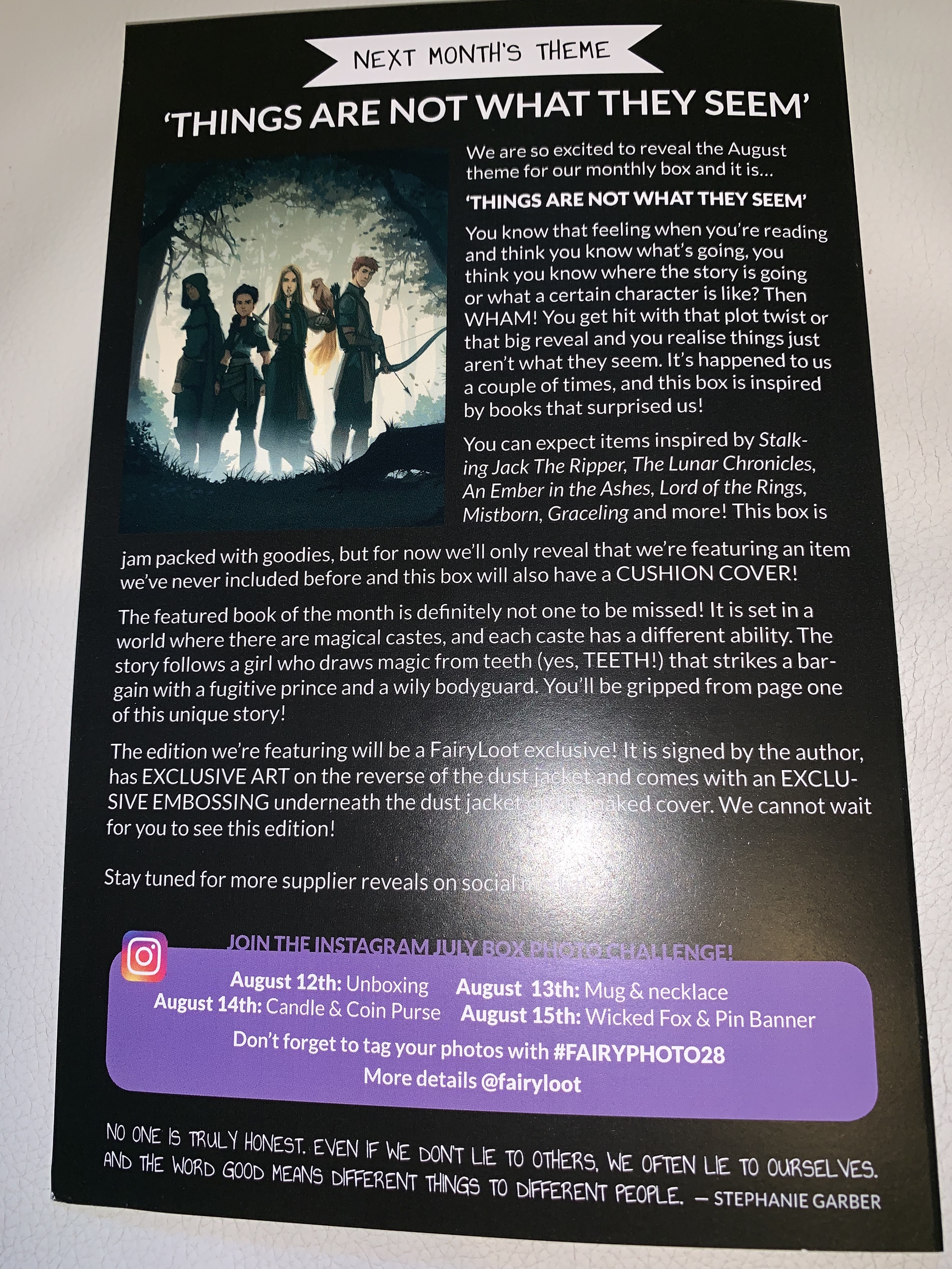 This is not the same art print quality (or I should really say, style) that I’ve come to expect from subscription boxes. It just makes the characters look a lot younger than I expect they are in the actual book.