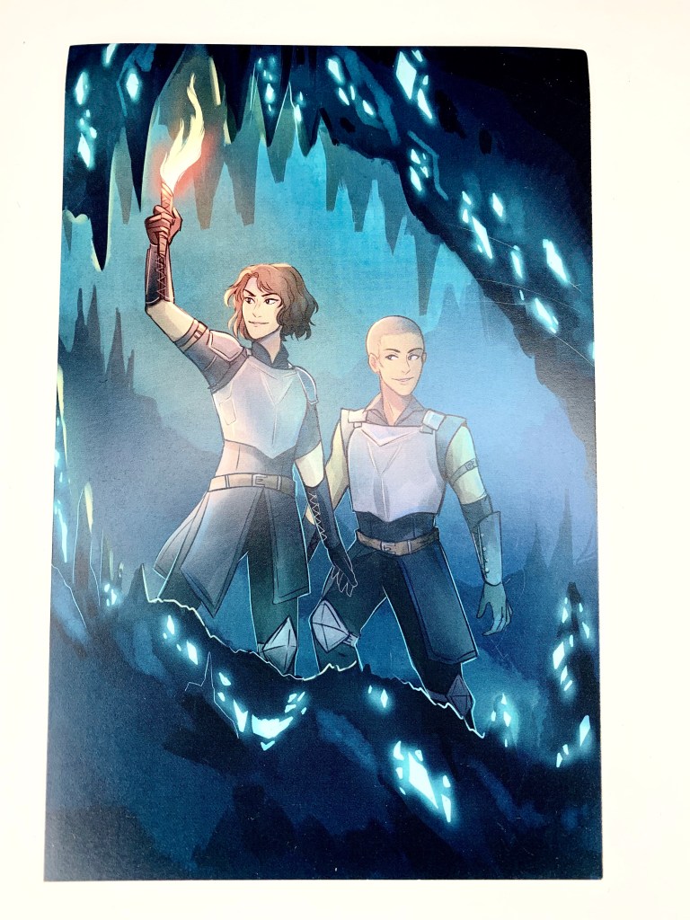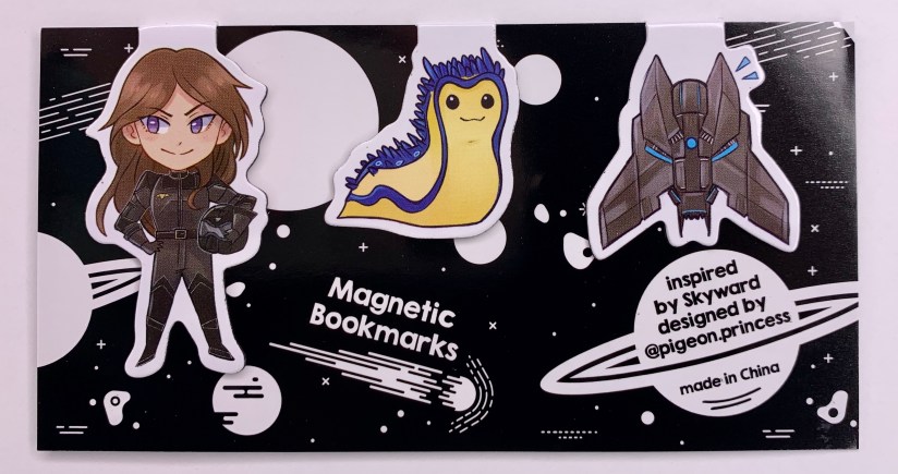 I don’t love the art style for humans but it really works for creatures and ships. Look how cute that slug-looking thing is! (Can you tell I haven’t read this series yet?)
