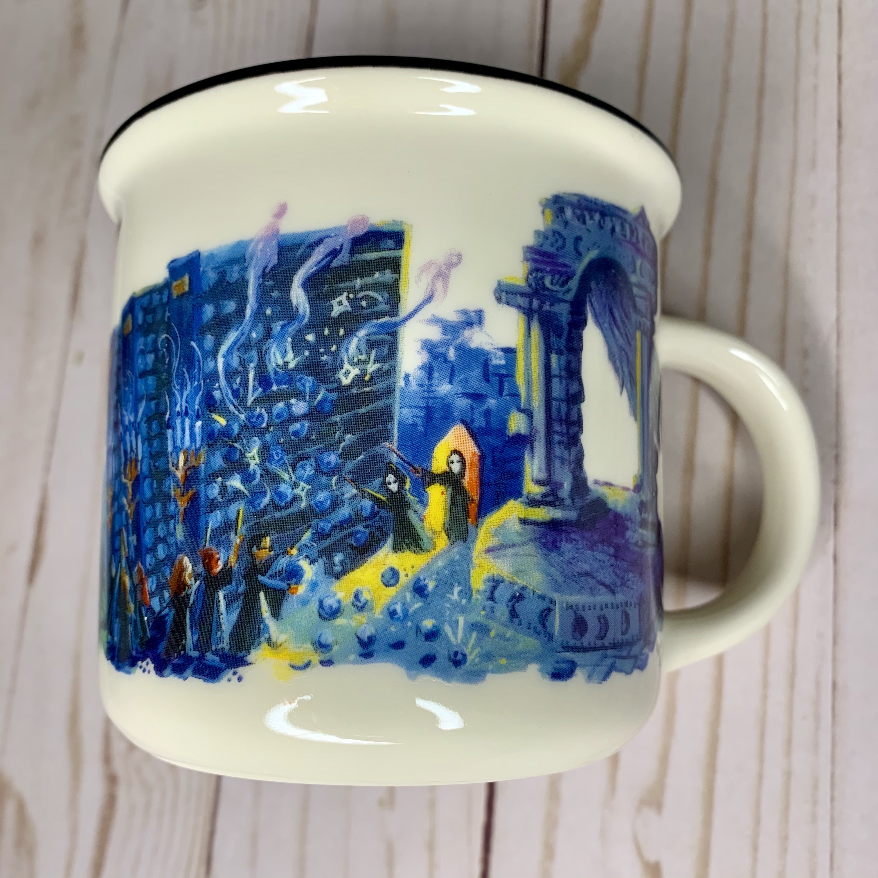 Her mugs/designs are always gorgeous. I love the details in with from Dolores Umbridge in her office with the cat plates to the DA on the thestrals, the battle against the Death Eaters, the veil, Grimmauld Place pushing its way into existence, and the colors are just so vibrant and pretty.