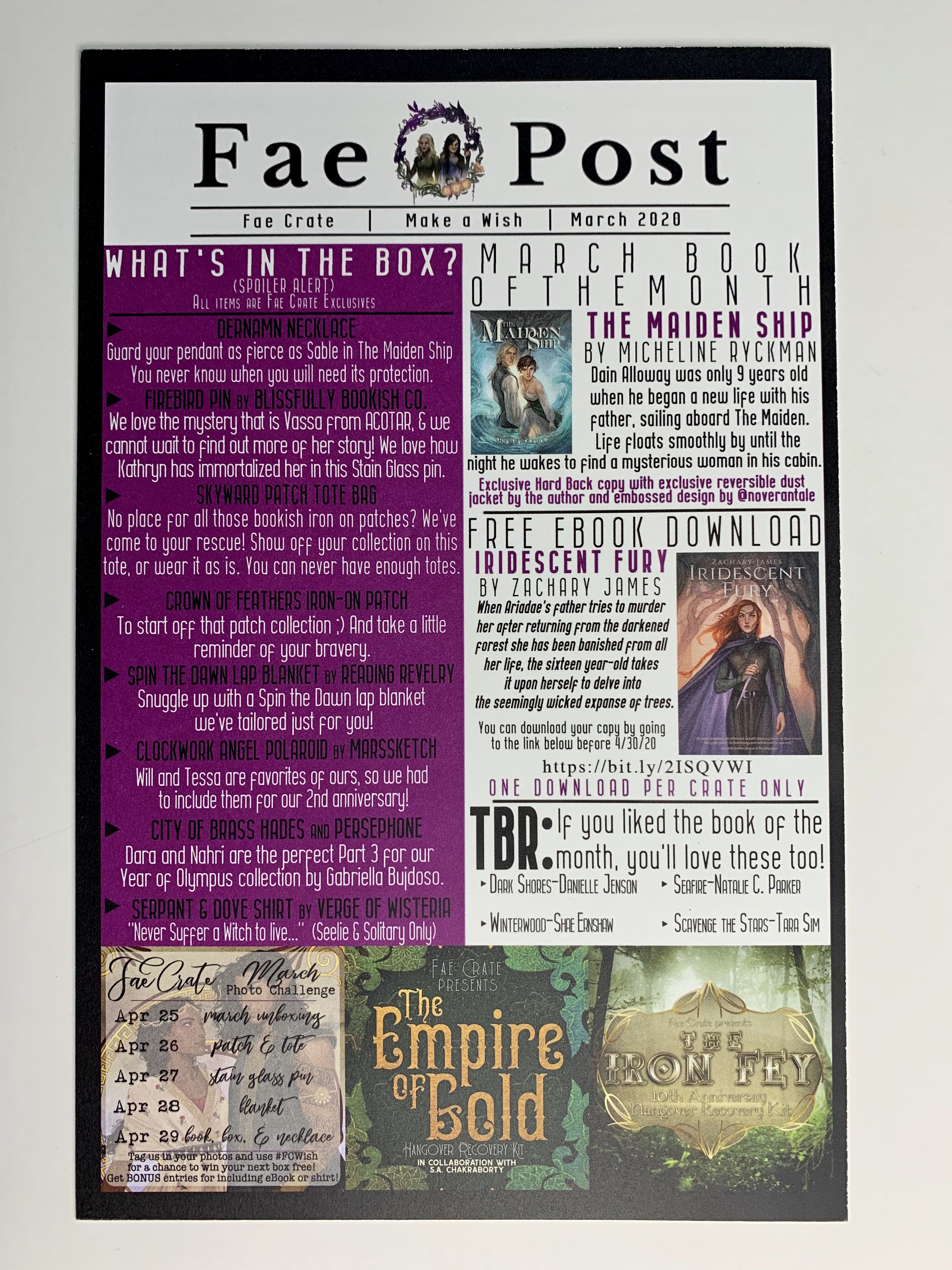 If you saw my January unboxing, you’ll know I bought it because it was Magnus Bane as Hecate… their Greek mythology/YA character mashup for this month was Nahri and Darayavahoush from City of Brass as Persephone and Hades. It was their anniversary crate and look how gorgeous their art is (also I 100% forgot I ordered this).