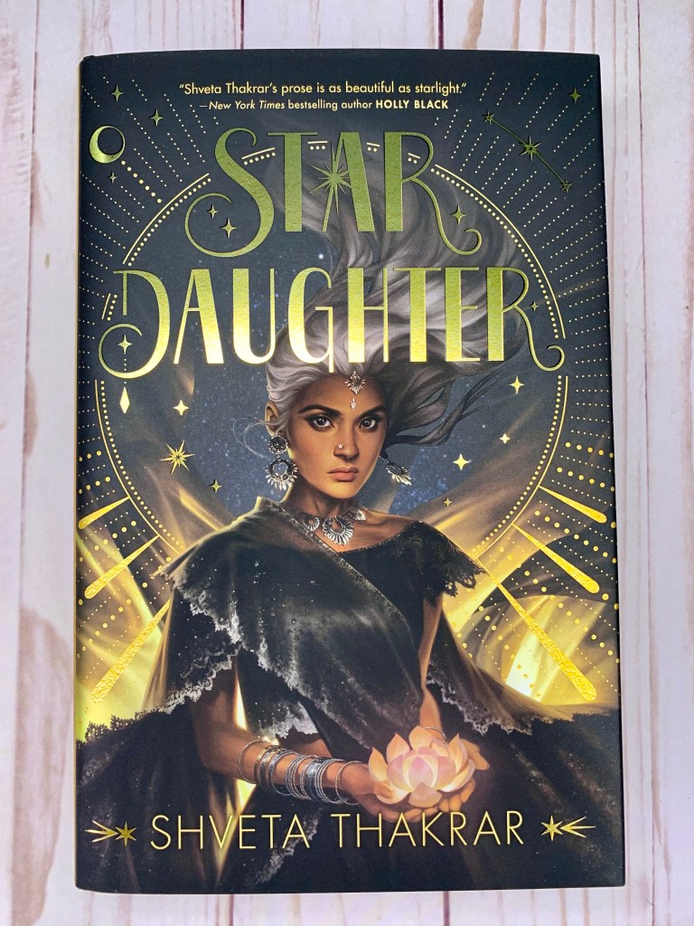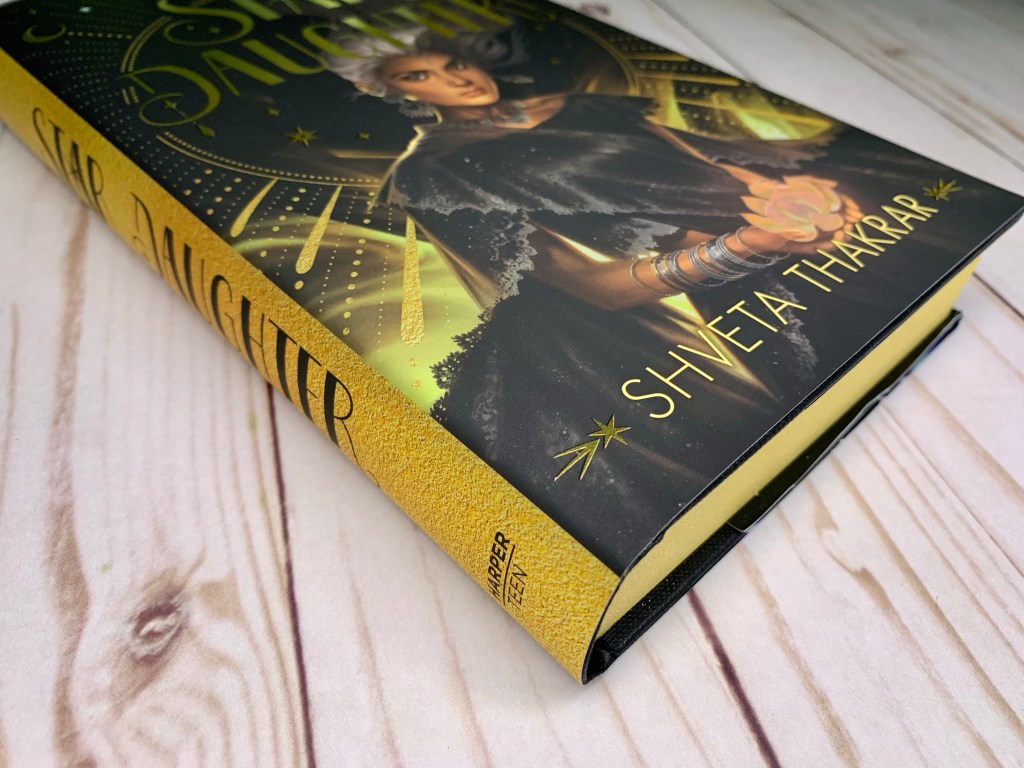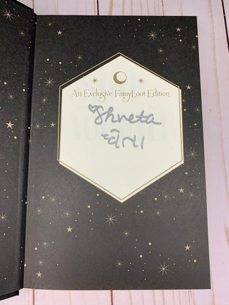 When I saw this cover, I immediately wanted it so I was excited to get this gorgeous gold sprayed version with Shveta’s signature and art on the back side of the dust jacket.