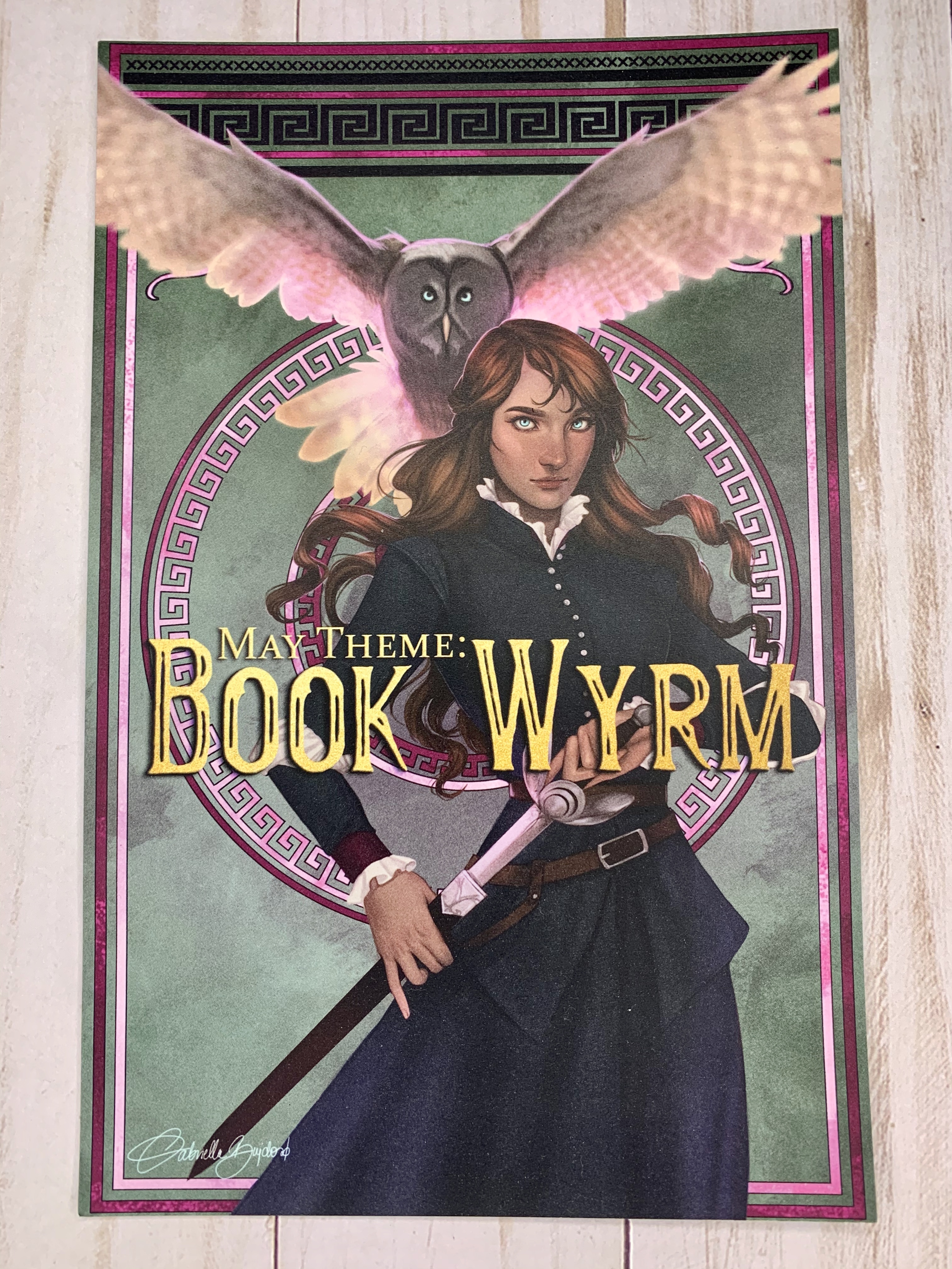Athena, queen, is represented by Elizabeth from Sorcery of Thorns and I love it. Sadly they sent the art with text on it. They said they would send a new version without the text for people to display as art, but it is now October and I still don’t have it – so I’m posting my unboxing.