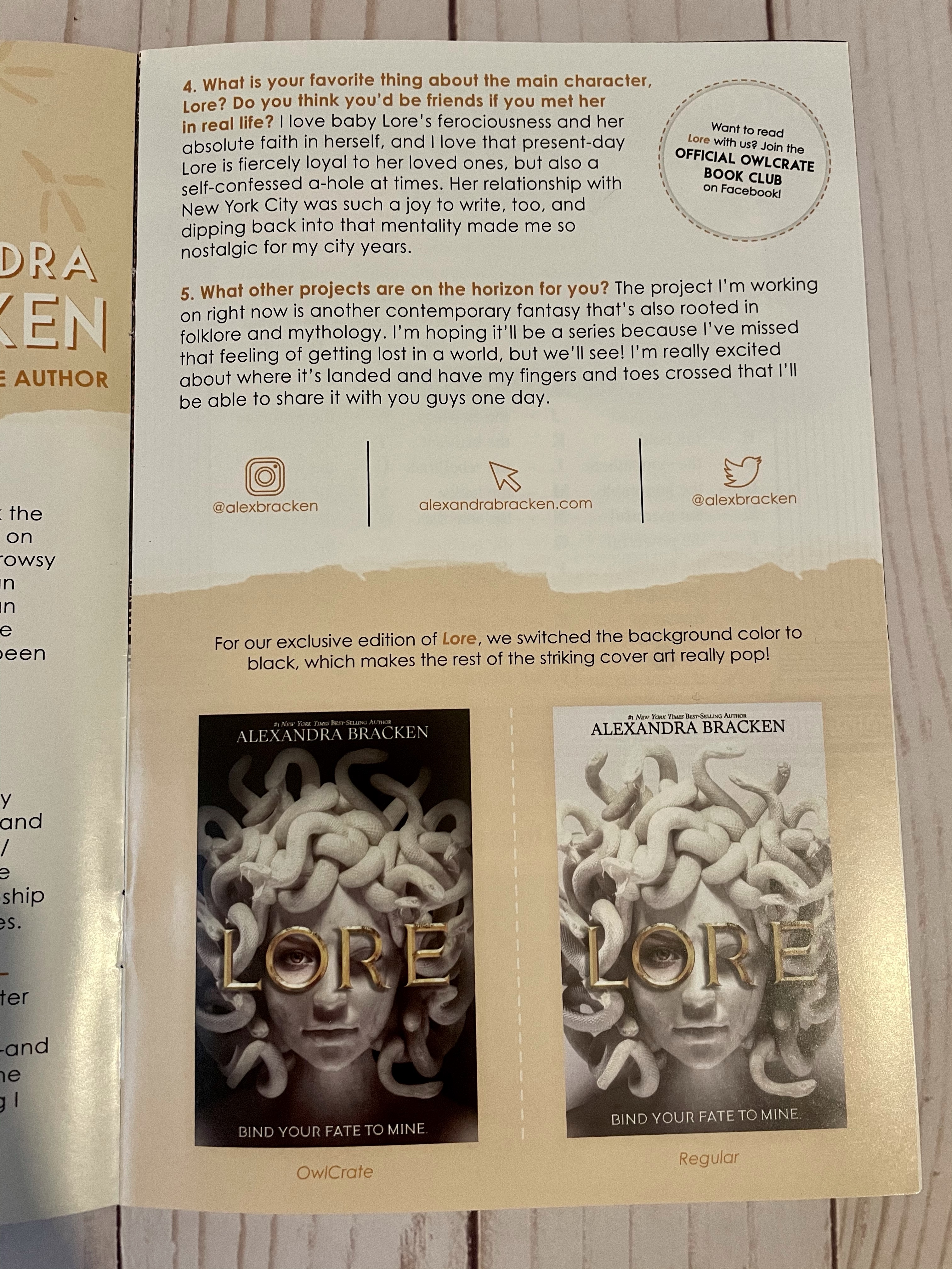 Great unboxing! I got Lore in a book box and am going to read in March.