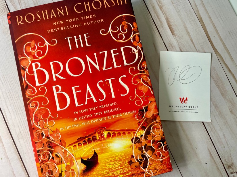 This is a ‘signed’ first edition of The Bronzed Beasts with a sticker signature from Roshani Chokshi that you can add to your book.